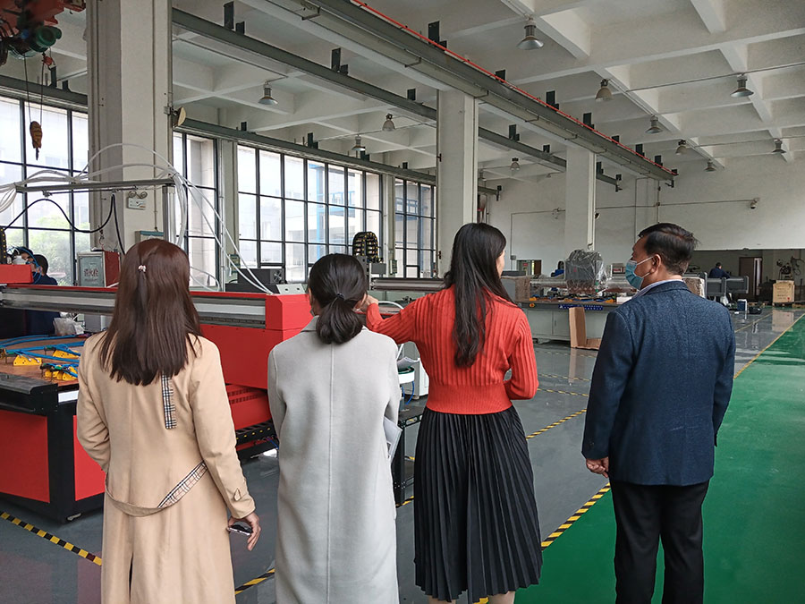 日出江花紅勝火,春來江水綠如藍(lán)。2021年4月13日,洛陽市高新區(qū)人大領(lǐng)導(dǎo)一行人來我廠考察指導(dǎo)工作,重點(diǎn)參觀了我司的鈑金自動化設(shè)備:涂膠設(shè)備、工業(yè)平板噴墨打印設(shè)備、焊接自動化設(shè)備、工業(yè)機(jī)器人等,對我司的產(chǎn)品給予了肯定。詳細(xì)了解了數(shù)控自動化設(shè)備的的應(yīng)用領(lǐng)域和新產(chǎn)品的研發(fā)工作,給予了充分地肯定與認(rèn)可。